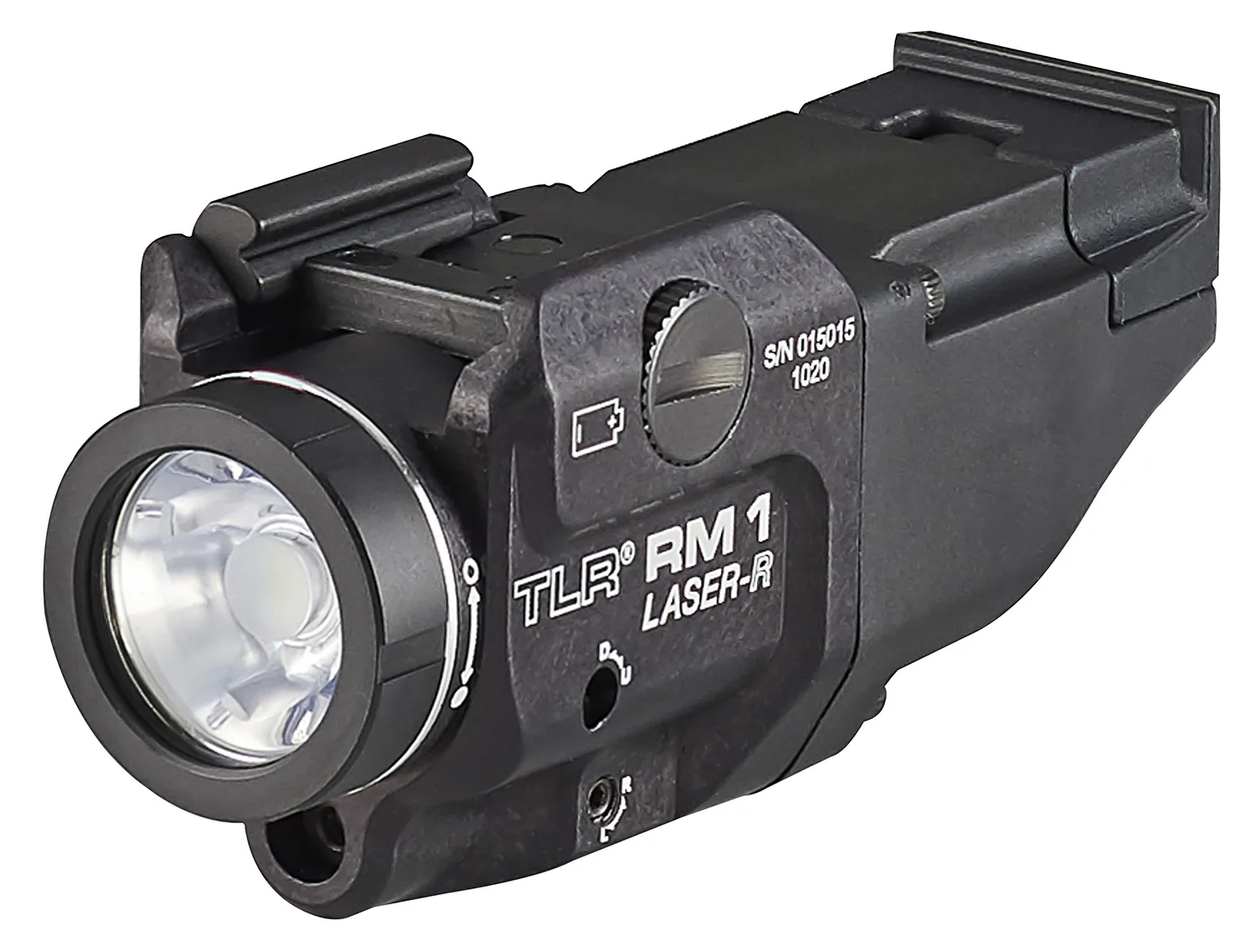Streamlight 69446 TLR-1 RM w/Laser Black Anodized Aluminum, 500 Lumens White LED Bulb/Red Laser, 210 Meters Beam, Picatinny Rail Mount