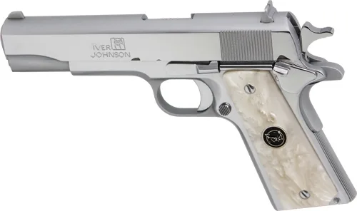 IVER JOHNSON 1911A1 45ACP 5″ – FS 8RD CHROME WHITE PEARL GRIP