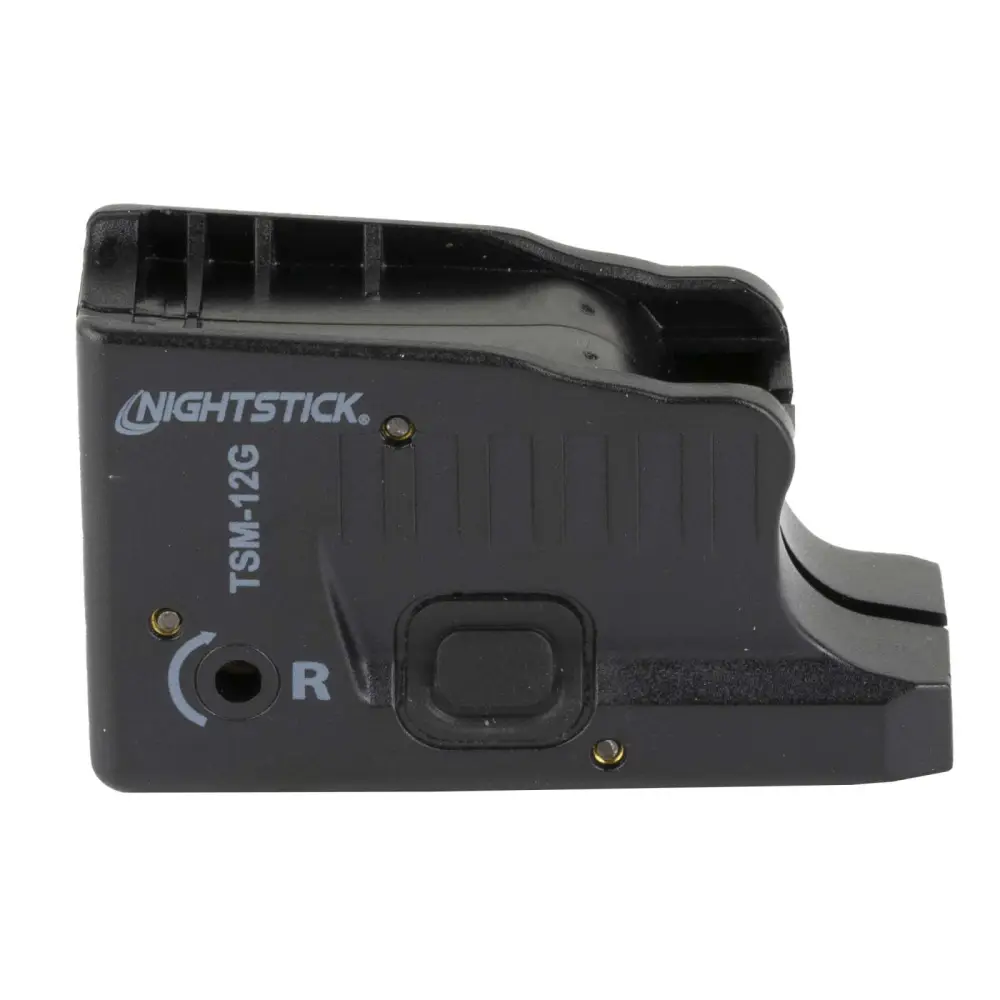 The TSM-12G Subcompact Tactical Weapon-Mounted Light with Green Laser for Glock G26, G27, and G33 sub-compact pistols uses a super-bright LED rated at 150 lumens working in conjunction with a precision-engineered miniature reflector to create a bright white beam of light rated at 104 meters. This weapon light features ambidextrous low-profile switches on each side of the light to operate the momentary-on and constant-on lighting modes or Class IIIa 532nm daylight-visible green laser. These lighting modes include white light, laser, or both light and laser.The two glass-filled nylon plastic housings of the TSM-12G is designed to lock onto the front of the pistol’s trigger guard for secure installation and the lowest profile possible. The weapon light includes a Nightstick MagMate USB magnetically coupled charger, a combination gun lock for secure charging, and an Allen screwdriver for installation and laser aim adjustments.